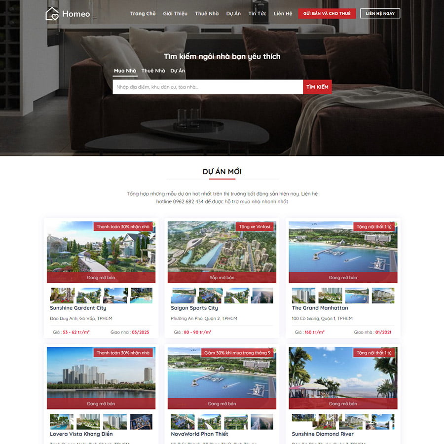 Đặt hàng thiết kế website theo mẫu "Theme wordpress bất động sản 50"