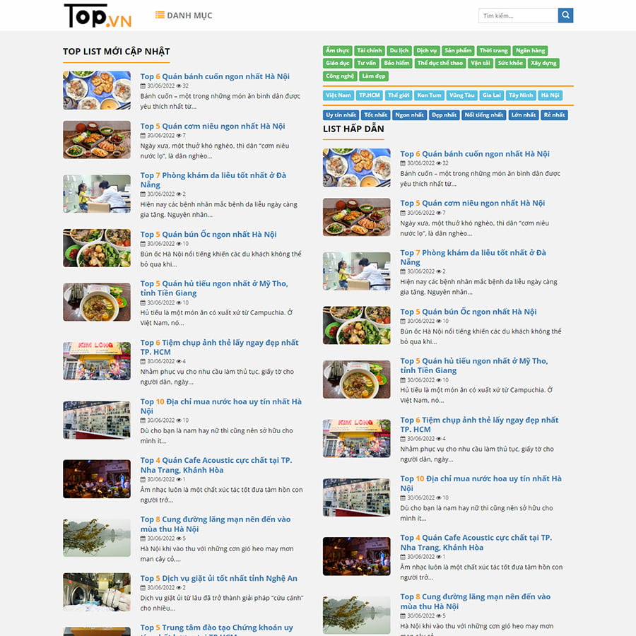 Theme wordpress giống toplist